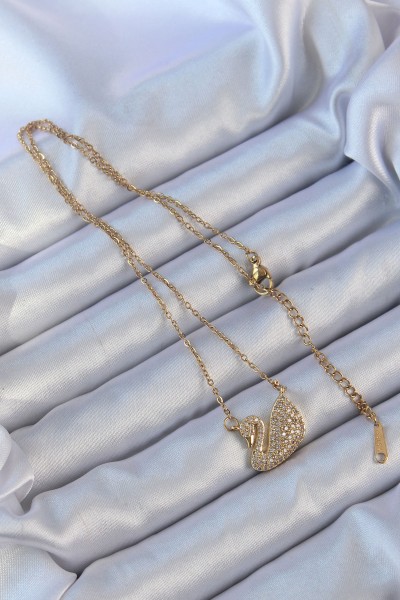 316l çelik Zincir Altın Renk Zirkon Taşlı Kuğu Kolye