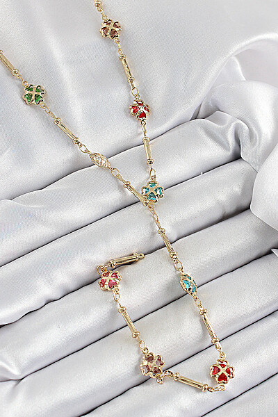 Pirinç Asorti Kalpli Yonca Model Gold Renk Zirkon Taşlı Y Kolye