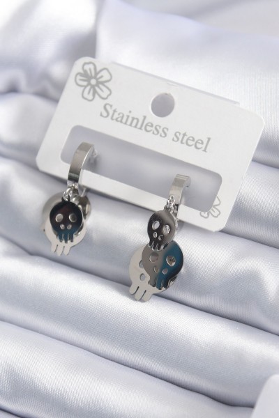 316l çelik Gümüş Renk Sallantı Kuru Kafa Model Kadın Küpe
