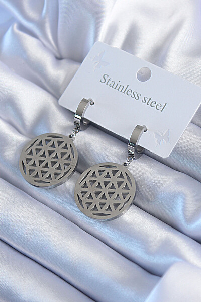 316l çelik Gümüş Renk Lotus Model Kadın Küpe