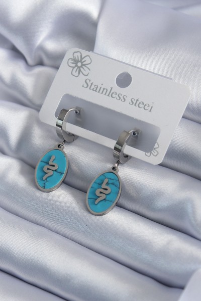 316l çelik Gümüş Renk Oval Mavi Taşlı Yılan Figür Kadın Küpe