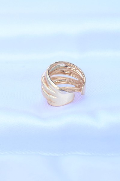 Tomris Hanım Pirinç Gold Renk Ayarlanabilir Tırtıklı Bombe Yüzük