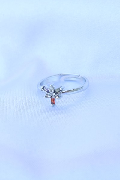 Pirinç Gümüş Renk Ayarlanabilir Renkli Zirkon Taşlı Yusufçuk Yüzük